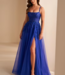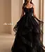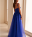 Elle plaira à tous avec sa coupe en A, ses broderies qui descendent sur la jupe en tulle , sa fente à la jambe , les détails au bretelles et l'encolure droite.