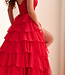 37115 Robe Bustier Dos Lacé Rouge - Mirage