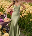 Un doux mélange de satin lustré, transparence et dentelle dans cette robe Sherri Hill.